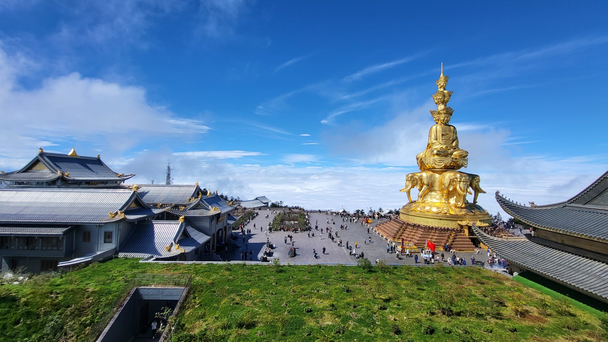 Wir besuchen einen der 4 buddhistischen Bergheiligtümer in China. Den Berg Emeishan, Nähe Chengdu. Auf diesem Berg sind ca. 30 Tempel und Klöster verteilt und hoch oben auf der Spitze trohnt eine goldene Statue. Westliche Touristen sind hier selten und da wollen selbst die Mönche ein Selfie mit uns machen.